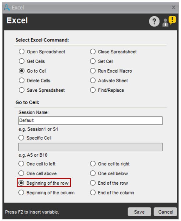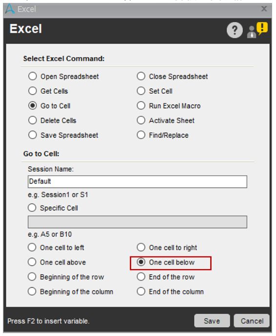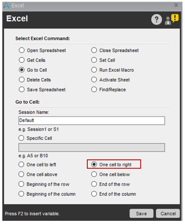 此操作将使你将数据存储在Excel的A2单元格中。所以,下一个提取的数据应该存储在B2的下一个单元格中。为此,请双击“转到单元”子命令,然后选择“右一个单元格”选项。之后单击“保存”。