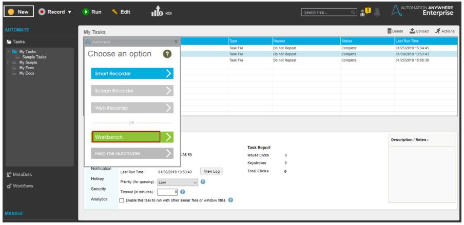 步骤10:在上面的截图中,你可以看到Smart Recorder,Screen Recorder和Web Recorder的选项。如果你想录制任何操作动作,选择一个适合你的选项,开始你的RPA动作录制即可。