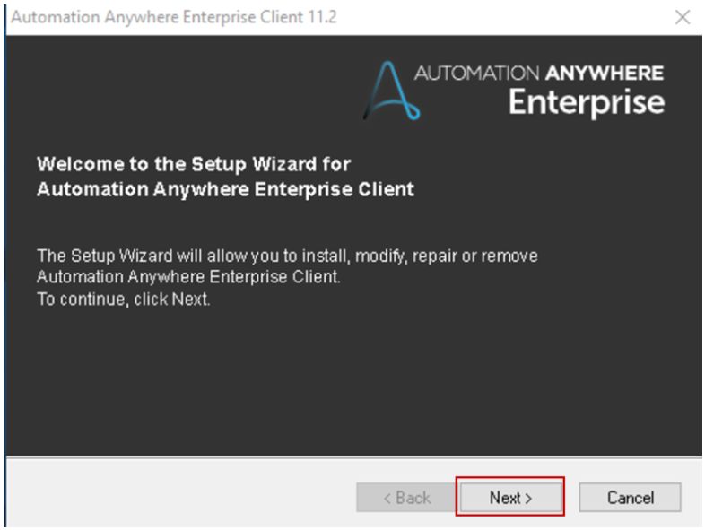 步骤2: 双击Automation_Anywhere_ Enterprise_Client_11.2.0.EXE启动客户端,如下图所示: