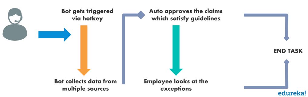 员工可以通过热键触发机器人从多个来源收集数据。然后系统将自动批准符合标准的索赔。稍后,员工可以查看有异常的审批问题。如果没有找到例外错误,那么就一直自动化执行下去。如下图所示: