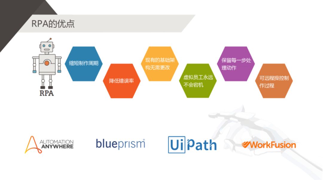 从Uipath记录器(recoder)通过流程挖掘,智能化生成工作流,到workfusion自动生成内置的流程,这些更智能更集成化的能力不断增加着RPA的优势。