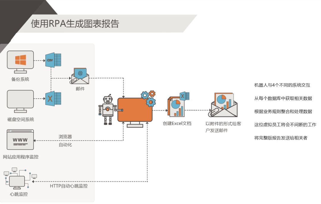 RPA可以从Web获取已经发布的报告,并根据实际需求转换,重新格式化和交付报告。根据不同的需求,从中央授权的报告机构的下载数据开始,然后根据需要操作报告数据获取信息,RPA是可以完成所有这些工作的。这对于金融、银行和基金公司来说有很大的作用,在这些公司中,集中发布到源的数据不能与任何应用程序集成,只能通过人工管理整个流程。