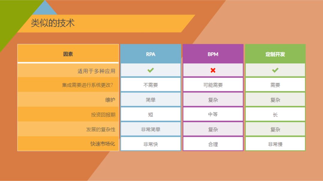 以下用图表的形式将RPA与其他可替代的方法进行比较更加清晰。