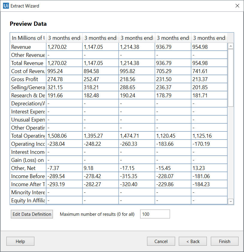 3. 点击Next,进入预览数据界面,编辑要提取的最大结果数,然后更改列的顺序: