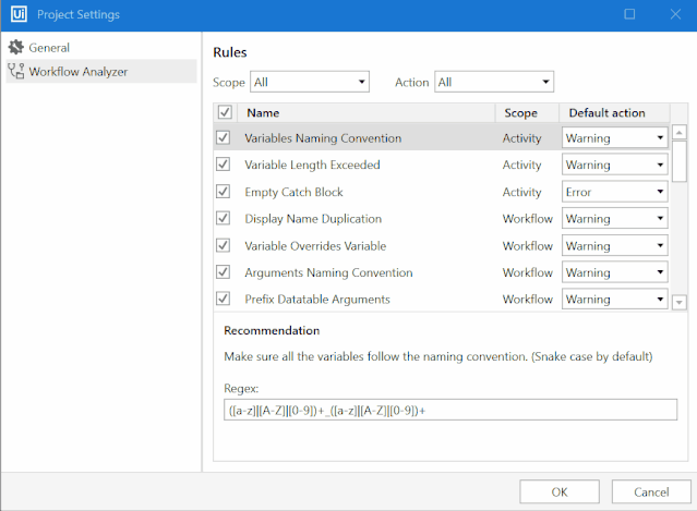 Studio 2019随附了针对项目活动属性默认值的集中管理。客户可以根据每个项目设置大多数常用属性的默认值。例如,您可以从一个位置为项目内的所有UI自动化活动设置默认超时。对于需要与默认值不同的超时的任何特定活动,则可以在“属性面板”中覆盖默认值。