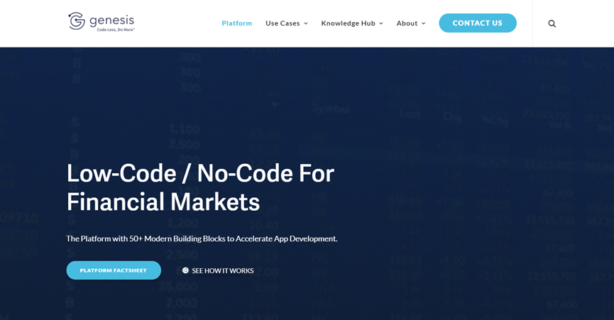 从产品形态来看,Genesis没有走全域型低代码开发平台路线,而是聚焦在了市值巨大的金融领域。在Genesis的低代码/无代码开发平台赋能下,用户可通过可视化拖拽方式,在几天甚至几小时内快速开发出自己想用的应用,业务场景涵盖EUC(终端用户计算)、XP投资、交易平台、交易监管等。