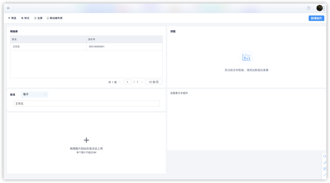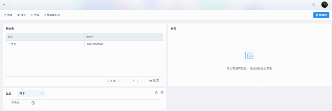3、筛选组件是用于动态筛选展示当前仪表盘中的数据。可以动态的看到想查询的数据。