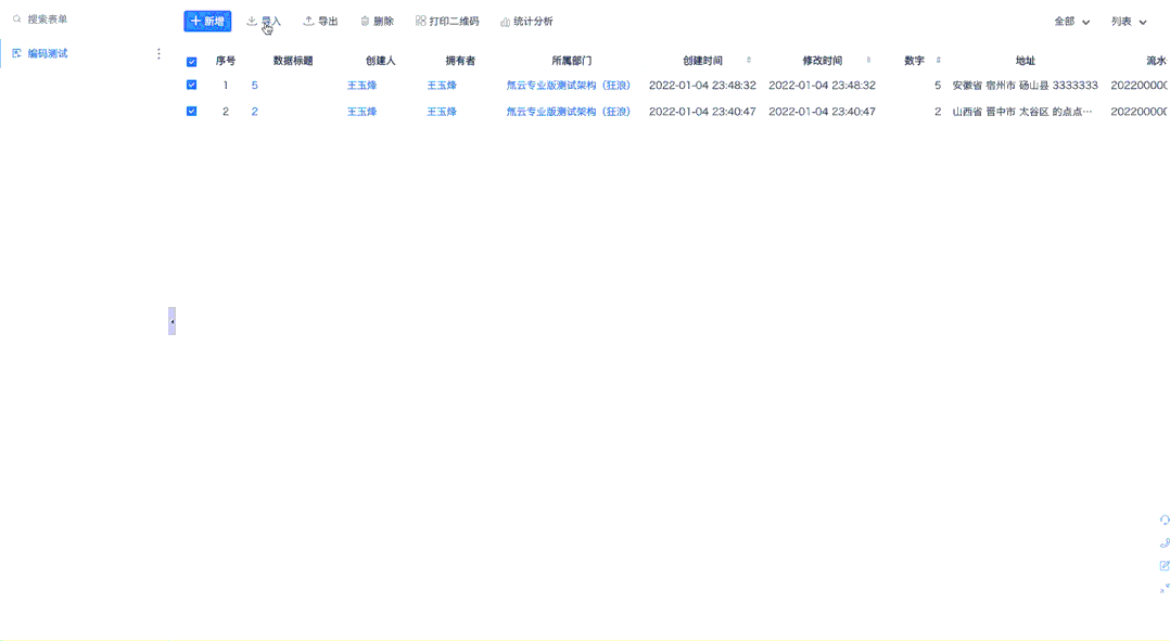 下载当前应用的Excel模板,将数据填入到Excel模板中,再导入到应用中。也可以在新建表单时,将外部数据源(数据存储的Excel导入到表单中)