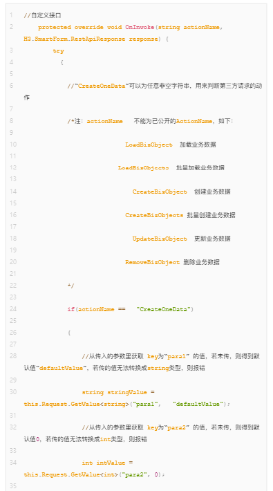 在表单设计->后端代码中插入自定义接口,(默认的代码保持不变,请勿删除)保存成功后,就可以第三方调用自定义的接口了。