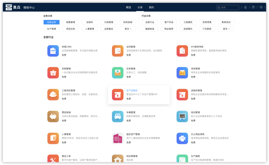 氚云有大量的通用模板免费使用,覆盖多个行业。开发人员可以使用氚云提供的免费模板,也可以对应用进行自主搭建。同时也支持自定义功能迭代和量身定制。