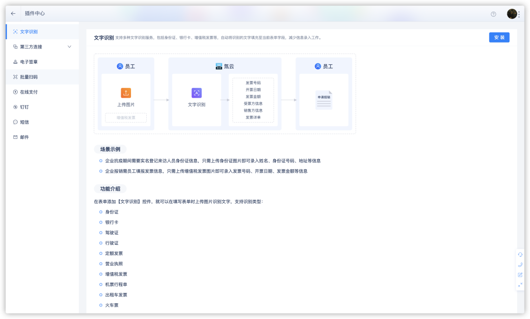 氚云提供一些插件供使用者使用,但是插件的种类虽然不多,但很实用,基本能满足日常的使用。