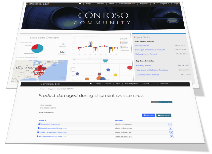 共享文档更方便。Power Apps Portals 对 SharePoint 和 Azure Blob 存储的本机支持,让我们可以轻松地从整个组织的多个数据源上传和共享文档。