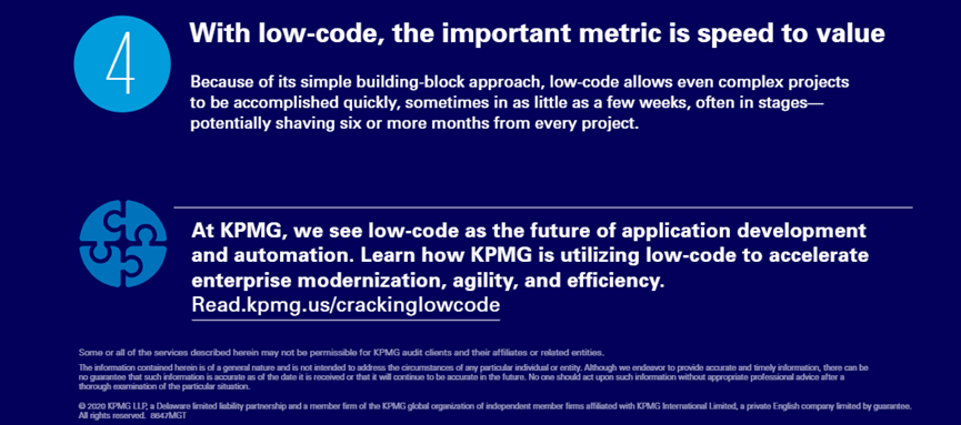 未经允许不得转载:RPA中国 | RPA全球生态 | 数字化劳动力 | RPA新闻 | 推动中国RPA生态发展 | 流 > 毕马威:低代码开发平台,可以带来高额回报
