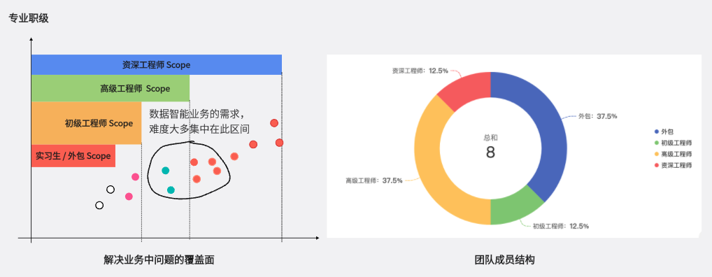 基层成员因能力受限,不能有效参与日常业务,需求大量积压在头部成员手中,导致交付吞吐量很难提升