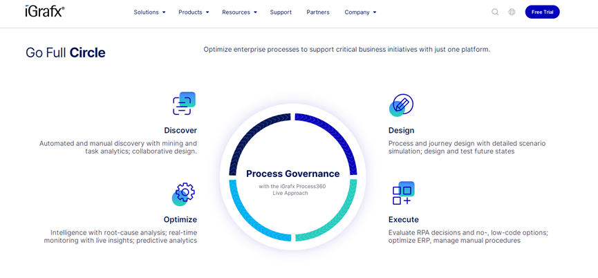 Process360 Live是iGrafx打造的新一代智能流程管理平台,内置RPA、流程挖掘、任务挖掘、离散事件模拟、预测分析等创新技术,通过与Zeitworks进行技术合作将补充桌面流程挖掘的空白,进一步加强整个自动化生命周期的智能性。