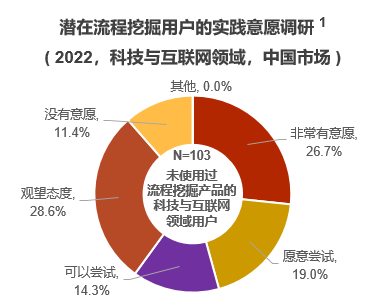 结合整体用户投入意愿与市场发展预估:至2025年,40%+的大型科技与互联网企业都会在至少一项业务流程项目中展开流程挖掘的技术投入。