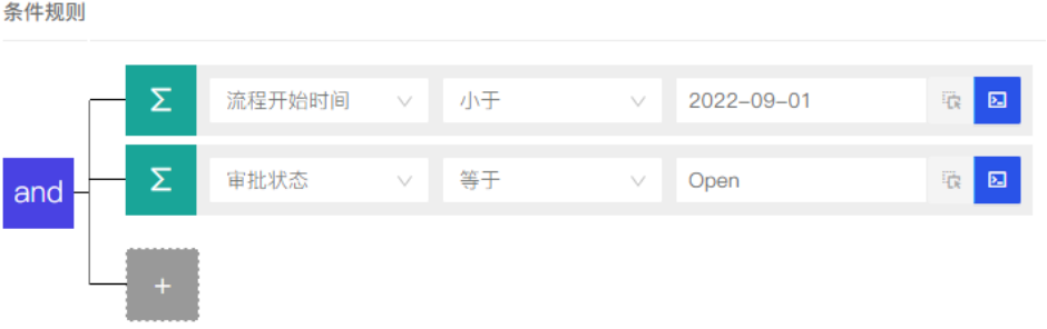 除了XQL,ProcessX还支持对复杂业务流程规范逻辑的输入。例如下图,用户可以指定流程开始的时间以及审批的状态来对流程进行筛选和合规检测。此外,ProcessX还提供了一些常用的风险检测函数(例如职责分离SOD函数等),用户可以直接以组件的形式直接利用函数,或者将函数与XQL融合,实现更加复杂的流程合规分析。
