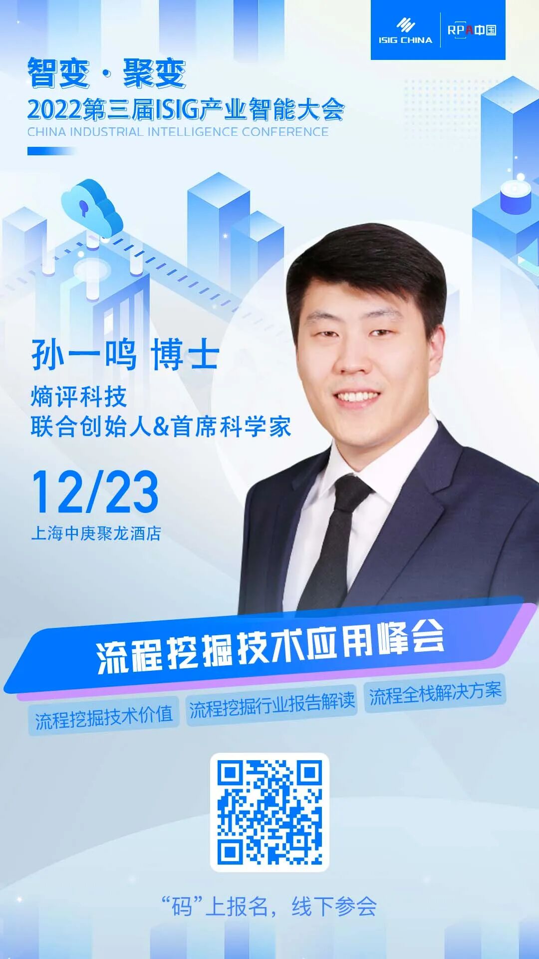 来自熵评科技的联合创始人&首席科学家孙一鸣博士,将受邀在本次「ISIG中国产业智能大会」上与大家见面,并在12月23日的“2022流程挖掘技术应用峰会”上参与演讲和圆桌论坛,与大家一同分享流程挖掘的技术演进和当下重点以及在中国市场的发展。