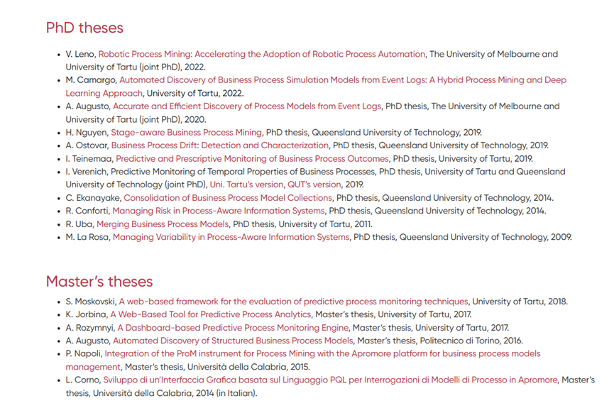 Apromore的流程挖掘产品由墨尔本大学、塔尔图大学、都灵理工大学等全球多家顶尖大学,经过十多年的技术沉淀研发而成。该产品已整合了11篇博士论文的研究成果,并在100多家科学出版物中展示引用次数超过1,500次,获得了9个最佳论文奖和3个最佳博士论文奖。