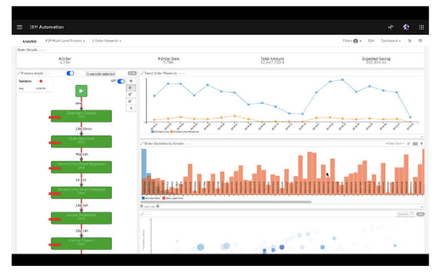 制造业:某家跨国制造公司希望分析其从订单到现金的流程,以确定自动化机会和关键步骤,以降低成本和时间。客户通过IBM流程挖掘功能在生产线创建活动中做出快速、数据支持的自动化决策,从而节省了50,000欧元,交货时间平均缩短了3天。