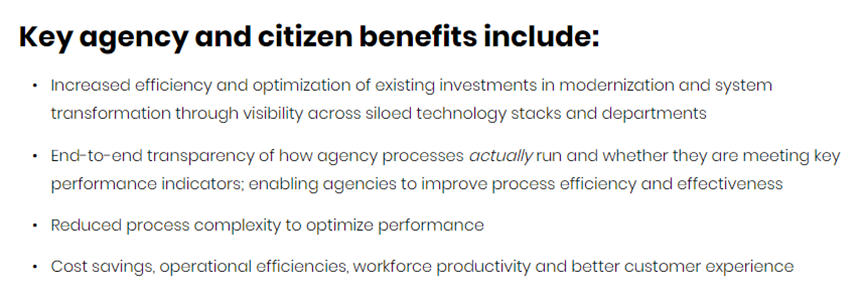 美国联邦、州和地方政府通过流程挖掘将获得以下收益:
