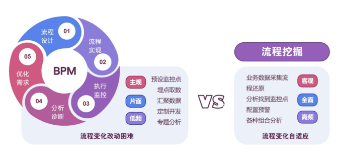 如果说BPM是一台给企业流程拍照的相机,那么流程挖掘就是这台相机的定焦镜头,专注于流程科学领域的复杂问题分析。