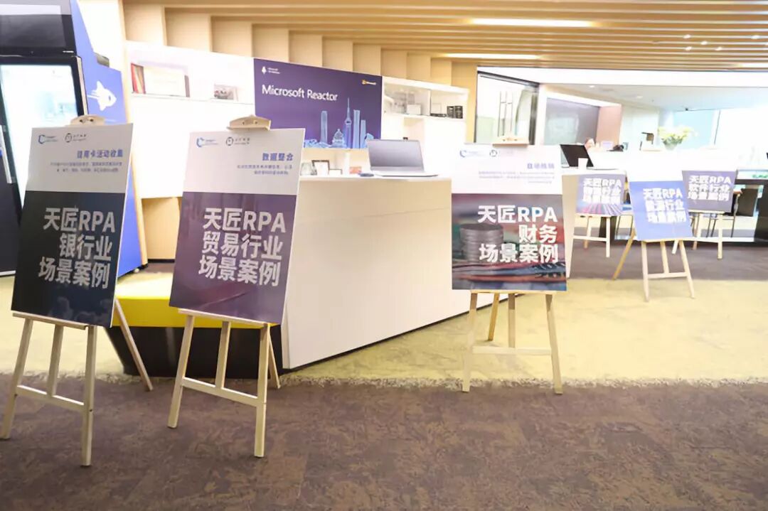 在会场外的互动区,集中展示了天匠智能RPA在各个行业领域的应用案例,吸引了大批观众互动交流,赋予了更多参与性和专业性。