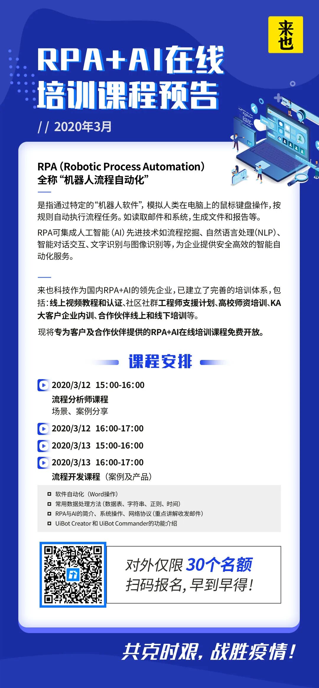 2020年2月24日,由光速全球基金和光速中国成长基金联合领投,来也科技完成了C轮4200万美元融资,这是目前国内RPA+AI赛道最高的一笔融资额。