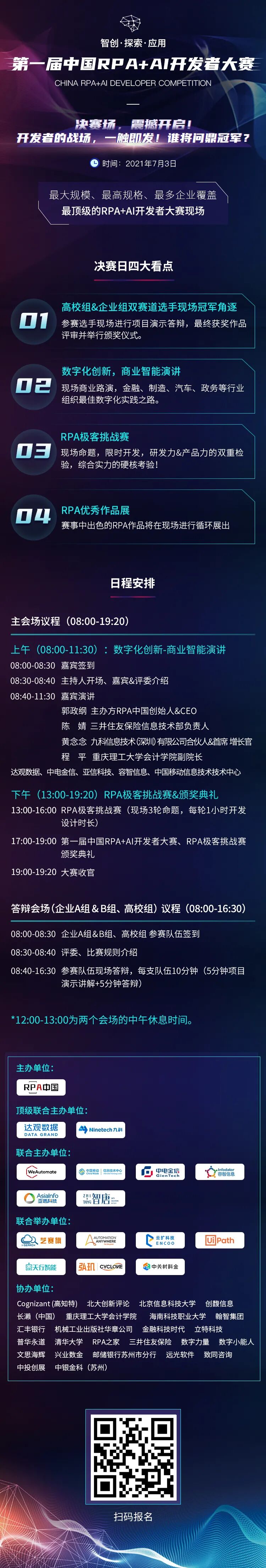 7月3日,第一届「中国RPA+AI开发者大赛」将进行最后的巅峰之战!