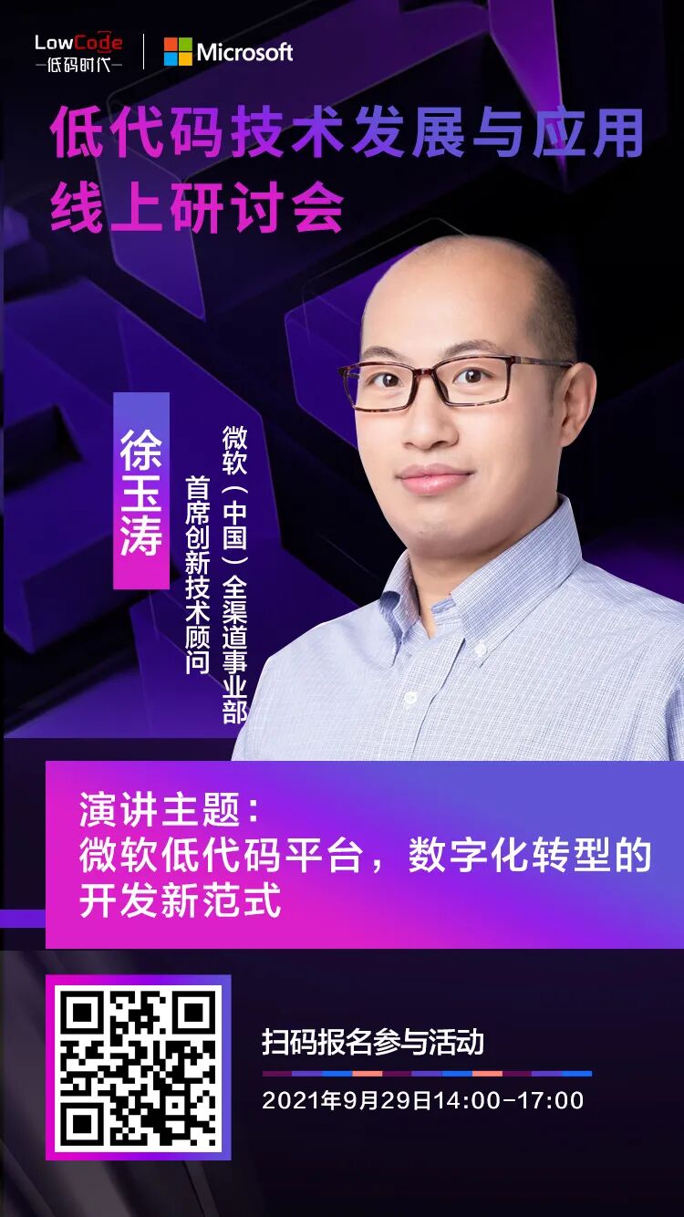 本次大会将围绕低代码应用最佳客户成功案例,云原生、容器化、边缘计算与低代码技术的结合,低代码开发模式与传统开发模式对比等创新性主题进行精彩分享,微软(中国)全渠道事业部首席创新技术顾问徐玉涛,作为特邀嘉宾出席此次大会,并以《微软低代码平台,数字化转型的开发新范式》为主题做重要演讲。