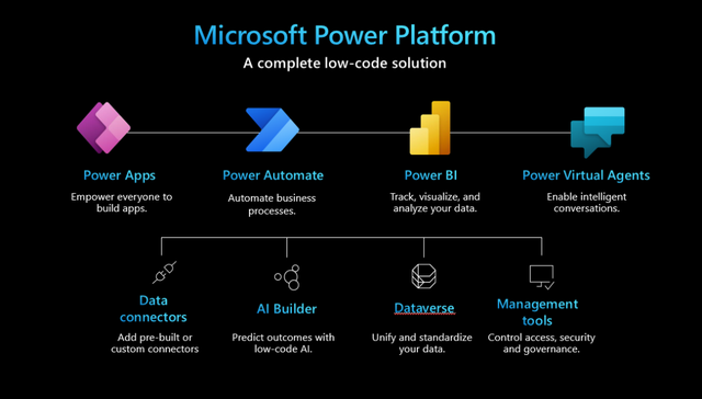 Power Platform被微软誉为“第四朵云”,由Power Apps、Power Automate、Power BI和Power Virtual Agents四大产品组成。