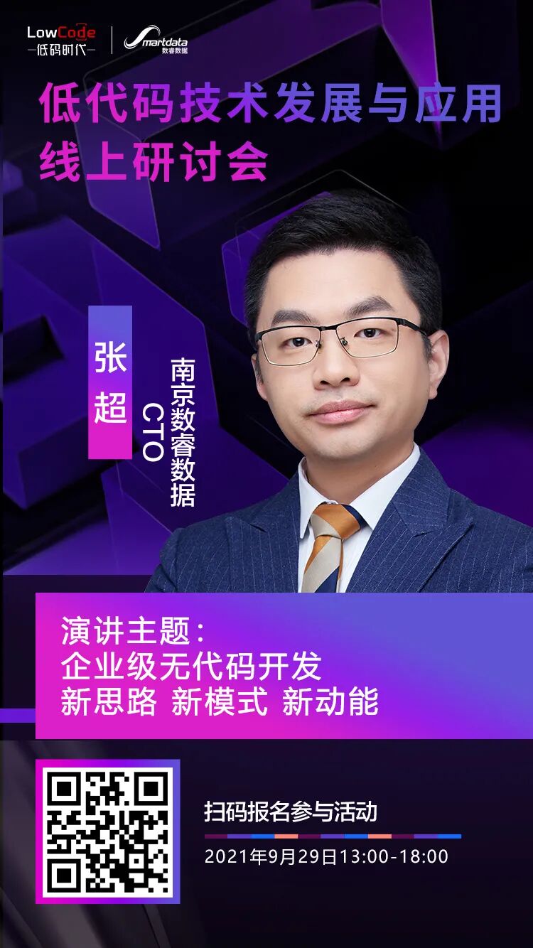 本次大会将围绕低代码应用最佳客户成功案例,云原生、容器化、边缘计算与低代码技术的结合,低代码开发模式与传统开发模式对比等创新性主题进行精彩分享。南京数睿数据CTO张超受邀出席本次会议,将以《企业级无代码开发 新思路 新模式 新动能》为主题,做精彩演讲。