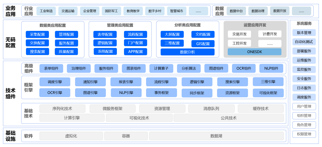 无代码。数睿数据追求极致无代码化有两个方面:一是不需要写代码去生成软件;二是在运行平台上通过数据描述生成软件。我们认为软件=数据+形式,即软件是数据的不同表现形式,数据可以定义一切。