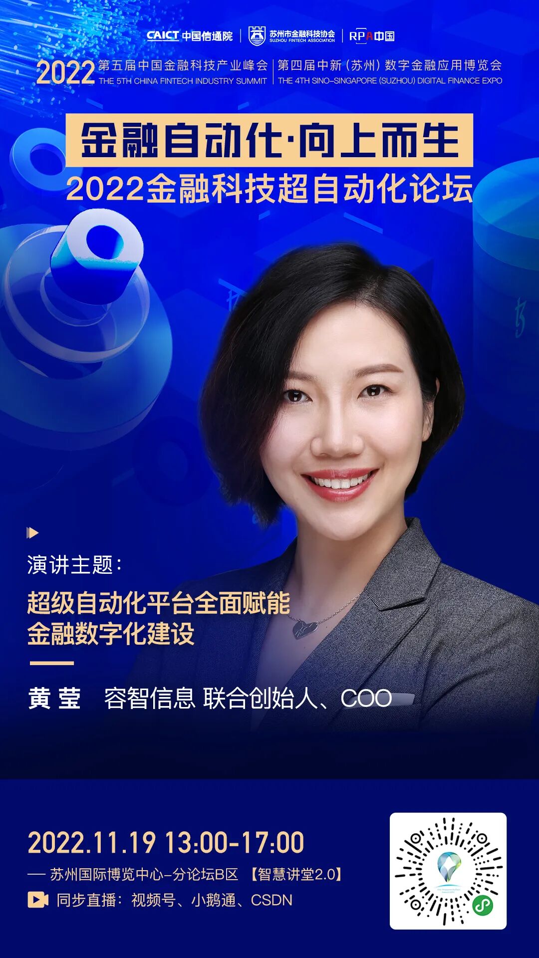 未经允许不得转载:RPA中国 | RPA全球生态 | 数字化劳动力 | RPA新闻 | 推动中国RPA生态发展 | 流 > 容智信息联合创始人、COO黄莹,受邀出席“2022金融科技超自动化论坛”