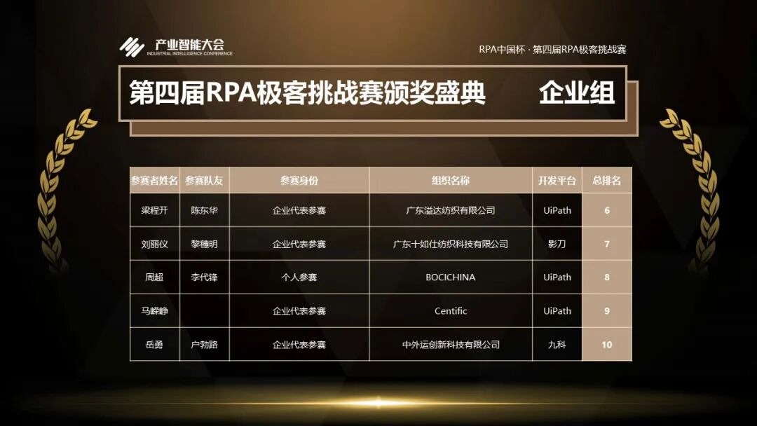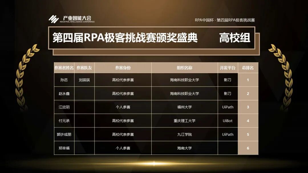 「RPA中国杯 · 第四届RPA极客挑战赛」获奖名单公示: