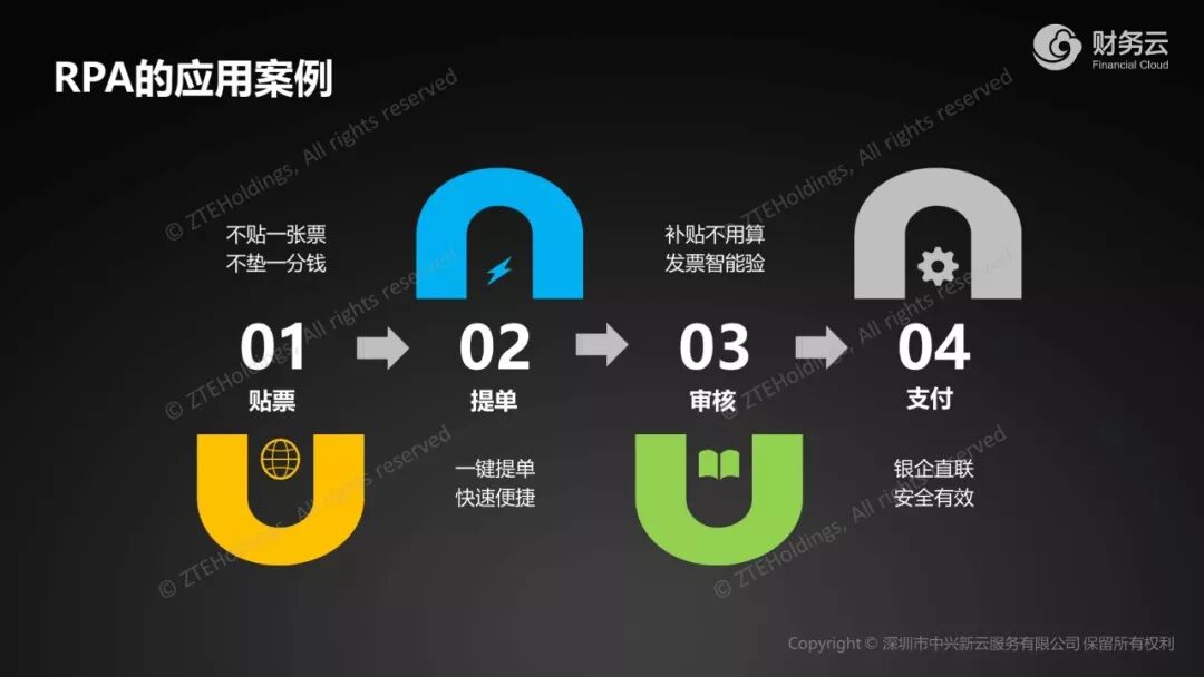 讲一个自身的案例,我们正在推全球子公司纳税申报RPA,我们的财务共享服务中心是把分布在全球107个国家和地区从原始凭证到报表,所有的核算工作都放到了西安的财务共享服务中心来处理。我们发现各个地方做纳税申报,靠人工去报,成本太高,我们现在就想做一个纳税申报的RPA,在做这个RPA之前,我们公司内部多轮讨论的过程中,很多人表达了否定的意见,很多人说做不了。为什么?全世界各个地方的税是特别复杂,没有办法找到统一的规则,比如说巴西,巴西的税种多达上百种,号称“万税之国”。中国没有哪个企业在巴西做生意是挣钱的,很少见;再有,墨西哥是这个世界上少有的,基于收付实现制来计增值税的,我们一般计增值税都是基于权责发生制,应收账款为一体,都是基于权责发生制,但是墨西哥这个国家,收钱的时候进增值税进项,付钱的时候进增值税销项。全世界各个地方的税率标准都不一样,于是在内部研讨的时候,大家就说这个RPA肯定做不了,后来,我们这么想这个问题的,这么复杂,我们就把它简单化一些,就像世界万物这么纷繁复杂,但是计算机里面我们都可以用0和1描述清楚,所以太复杂了就切一刀,再复杂再切一刀。比如说按照税制归类,按照税率归类,按照税种归类,把所有的场景都穷举完,再去做标准化。标准化做完之后,再交给RPA报税机器人来做。截止到目前,我们心得有两点:第一点,有了财务共享,才能够实现纳税的RPA;第二,做了两年多,也只是实现了部分国家的RPA报税机器人。