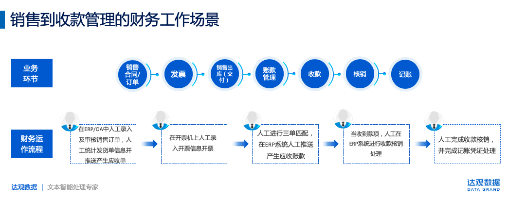所描述的应收会计涉及的管理内容中,企业也同应付流程一样ERP系统或其他信息系统中已经具备了一部分内容,即使信息化程度较高,但运作流程还是大量的人力参与其中。