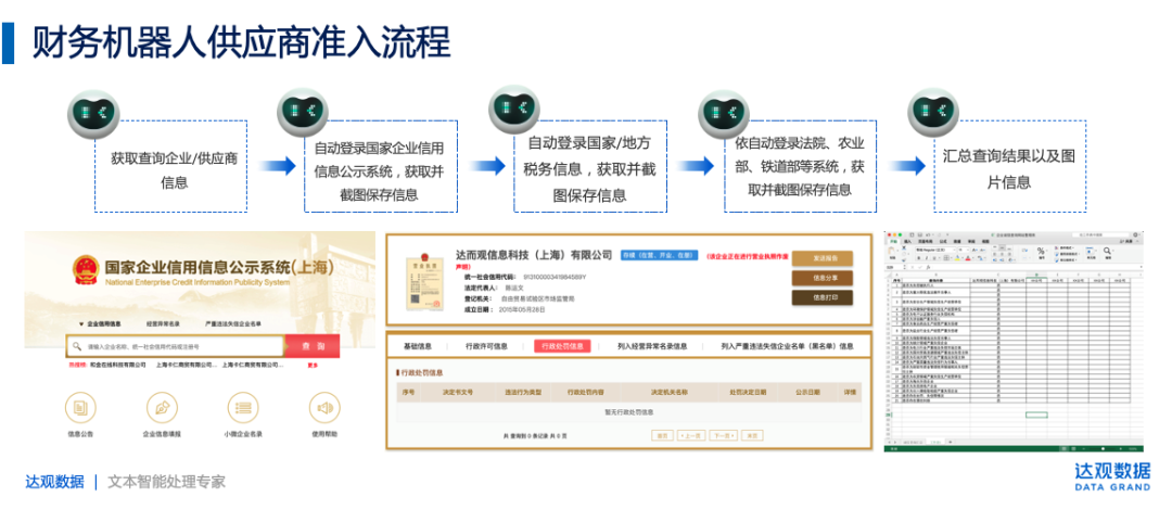 通过财务机器人的应用,能够在无人值守的状态下,快速完成相关信息的查询,并形成结构化的输出数据供业务人员使用。