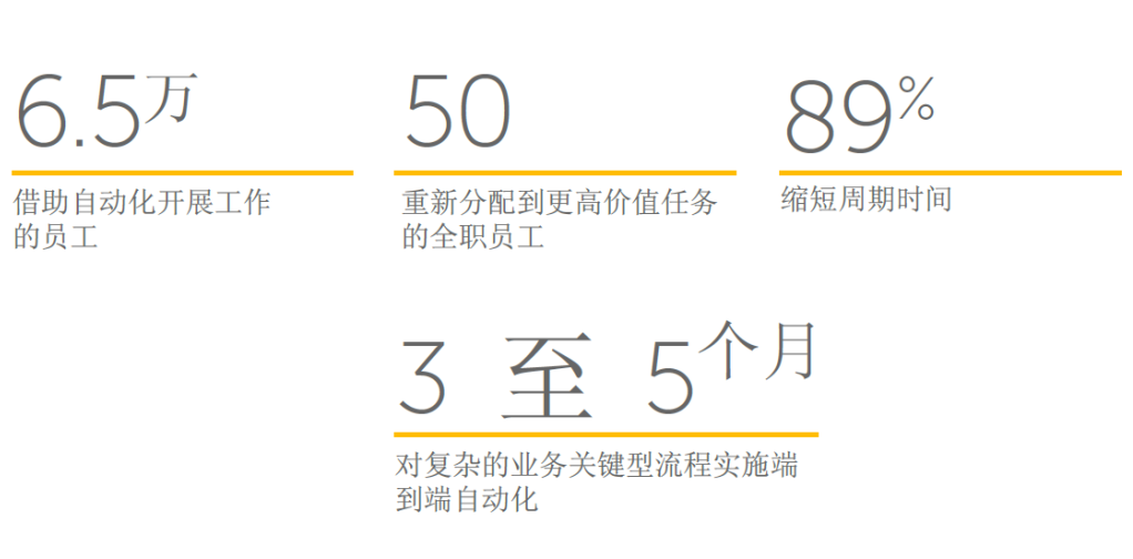 高级领导层提供自上而下的战略性支持对于调动整个组织全体员工的积极性发挥了重要作用。公司还认识到了采用以流程为先的做法实现智能自动化的重要性。在尝试部署RPA之前,公司充分调查了哪些流程最适合实现自动化,以最大程度地确保成功。