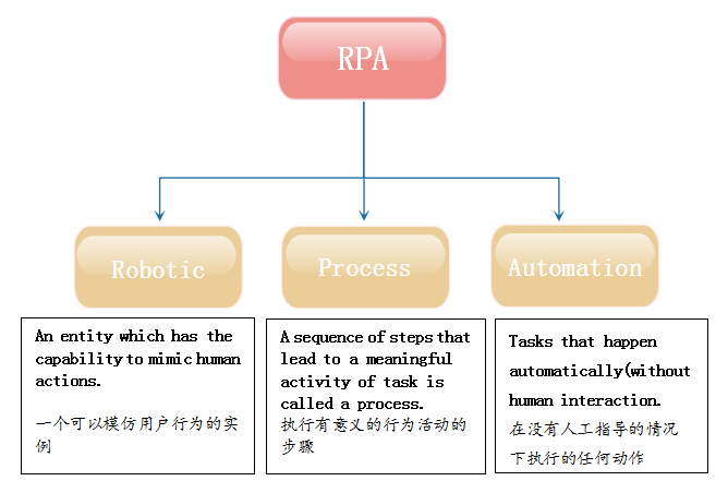 RPA机器人流程自动化(Robotic process automation):能够代替或者协助人类在计算机、手机等数字化设备中完成重复性工作与任务。