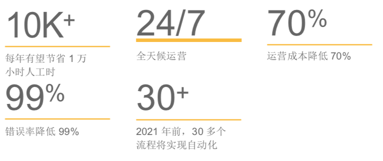 利用自动化,大昌行集团每年有望节省超过1万小时人工时。目前,大昌行集团有14个Bot Runner(包括10个无人值守Bot Runner和4个有人值守Bot Runner)以及8个Bot Creator投入运行,另外还使用了15个自动化流程。