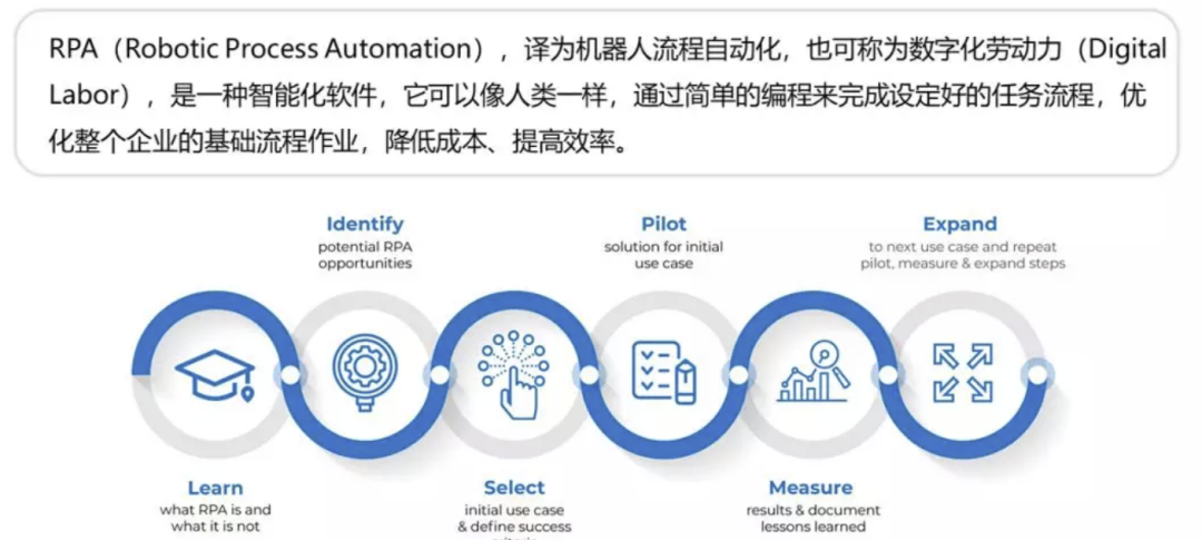 RPA可以帮助企业或员工完成重复单调的流程性工作,减少人工失误,提高运营效率,降低运营成本,加快企业数字化转型。
