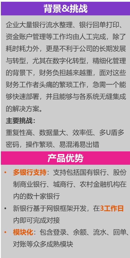 这个场景大家都做得比较多,主要的挑战还是对于全国2000多家银行的覆盖度,以及上线后的运维支持。