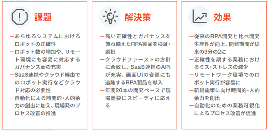 三井对RPA(机器人流程自动化)的大规模应用是该计划的重要组成部分。自2020年10月应用UiPath的RPA产品以来,三井已成功部署了95个RPA机器人,每年可节省9,000工时,并且每年保持开发20个机器人的速度,继续扩大RPA的应用范围。