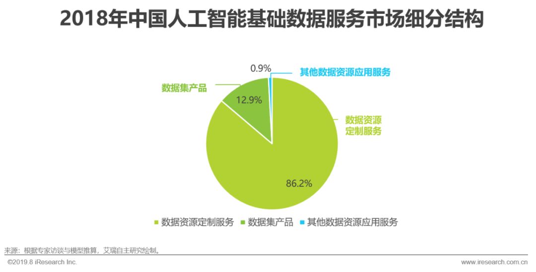 2018年中国人工智能基础数据服务市场规模为25.86亿元,其中数据资源定制服务占比86.2%,数据集产品占比12.9%,其他数据资源应用服务占比0.9%; 行业年复合增长率为23.5%,预计2025年市场规模将突破110亿元。 从整体增速来看,行业发展较为稳健,下游人工智能行业持续发力将形成长期利好。