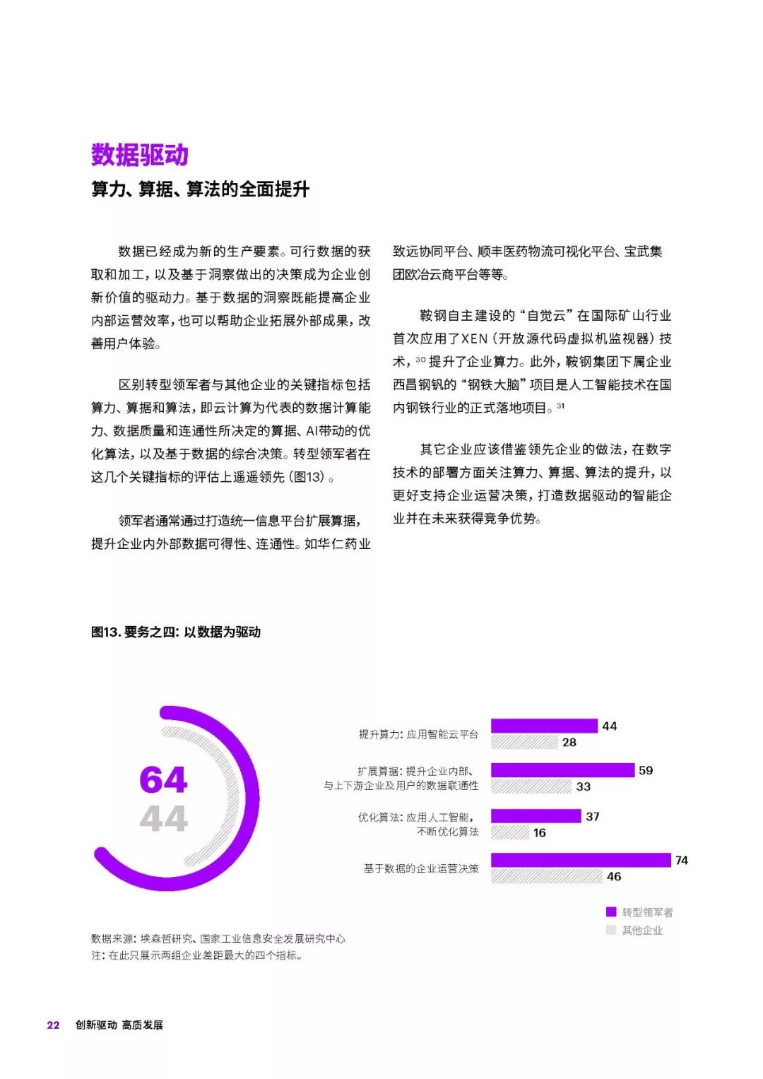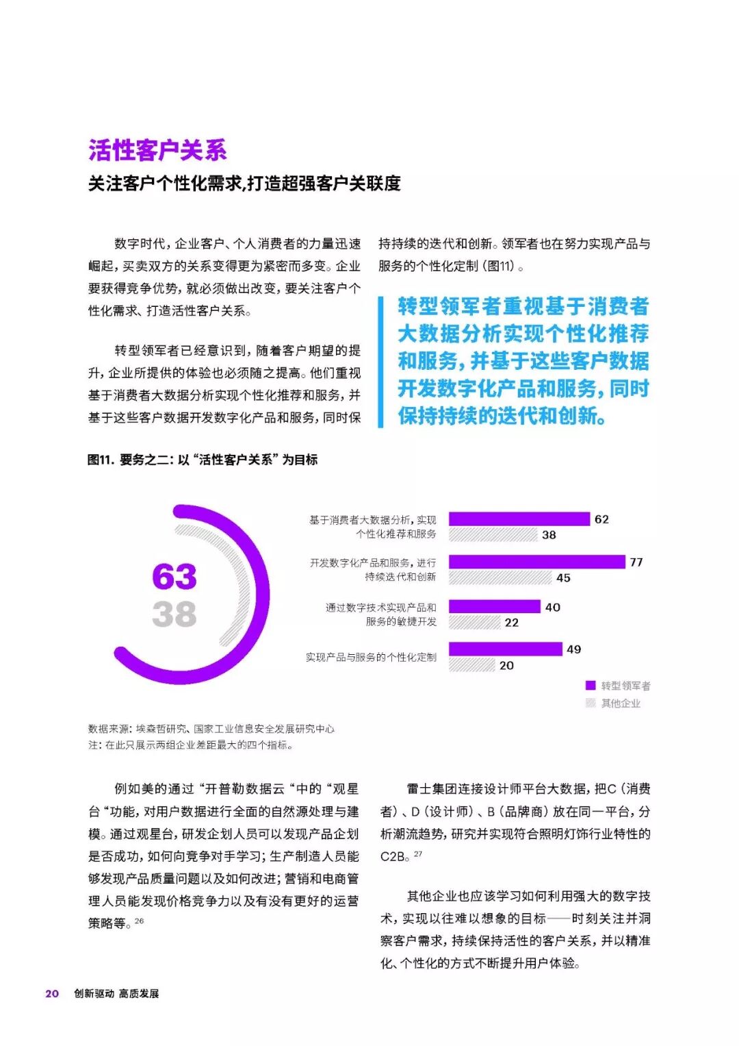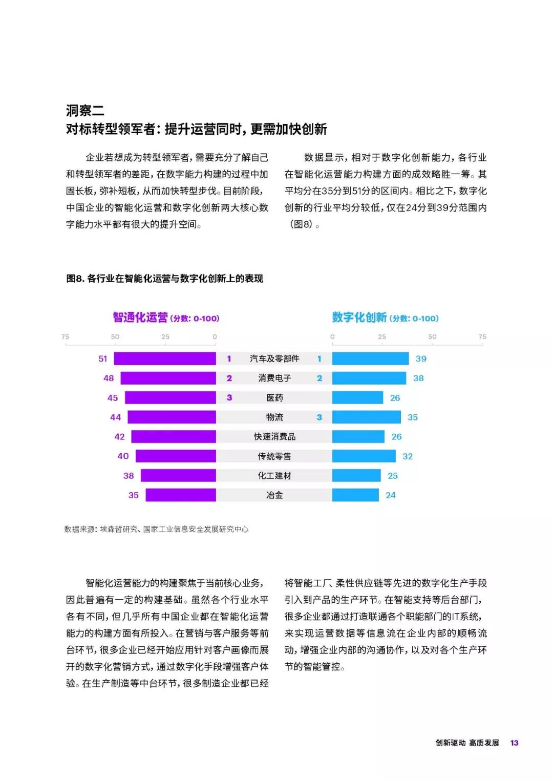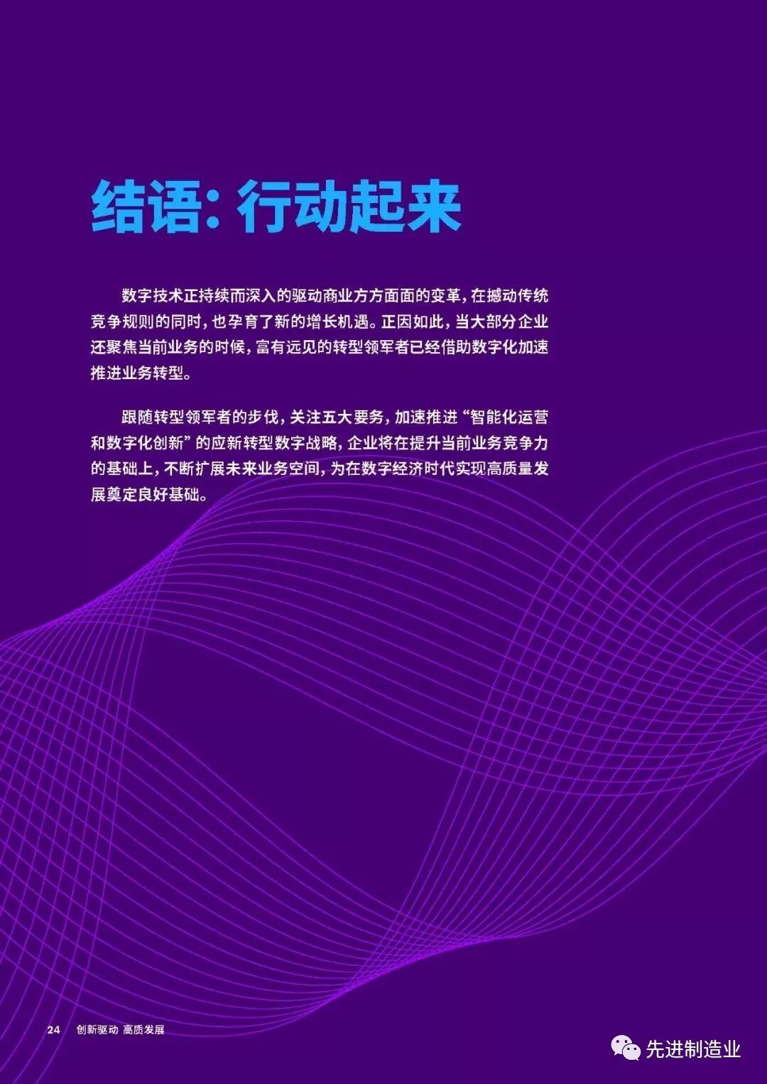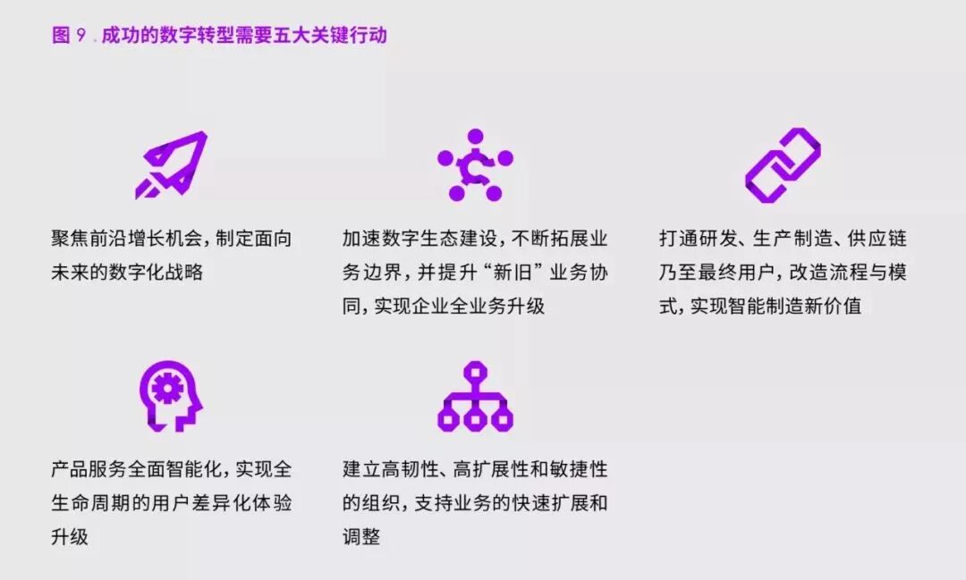 向领军者看齐,中国企业需要拥抱革新思维,制定面向未来的数字化战略,推动研发、生产、用户体验的全面转型,并打造动态高适应性组织,推动全业务升级。