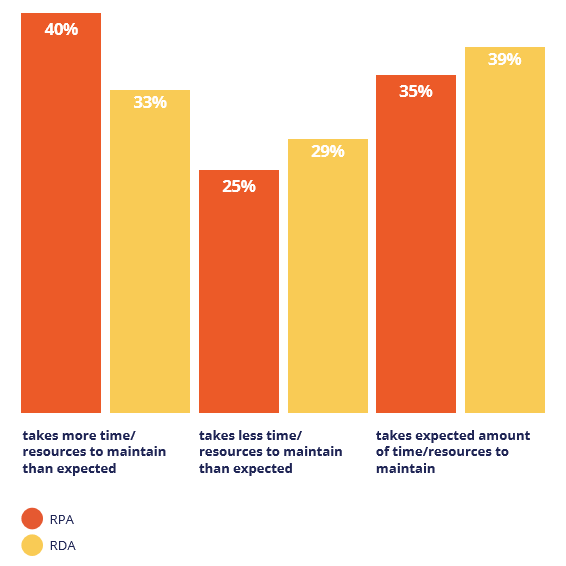40%的用户认为需要投入更多资源来维护和部署RPA -
