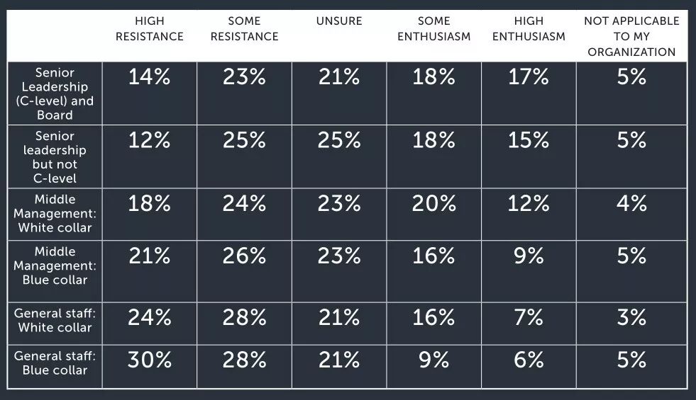 员工人数在1000人以下的企业,只有33%完成部署; -