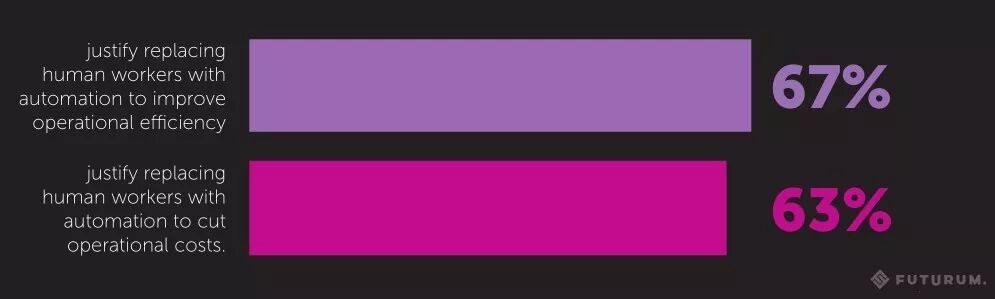 42%的企业表示;25%的员工将会失业,75%的员工将因为RPA而增加工作机会。
