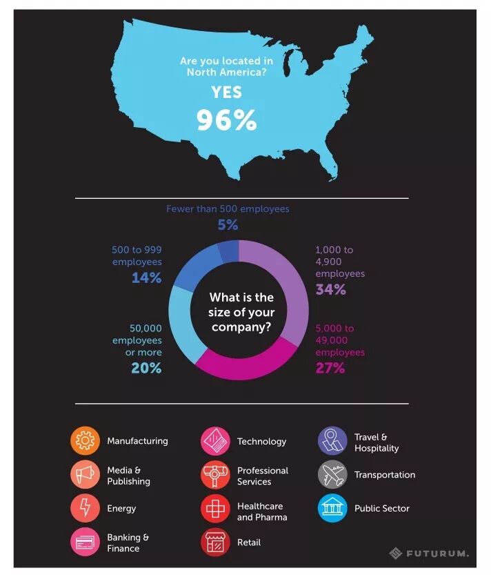 近日,由著名信息咨询公司Futurum发布了一份名为《2019年RPA与IPA自动化现状》的调查报告。该报告对北美1000家企业进行了详细调查,其中少于500人的企业有5%(50家);500-999人的企业有14%(140家);1000-4900人的企业有34%(340家);5000-49000人的企业有27%(270家);5000人以上的企业有20%(200家)。